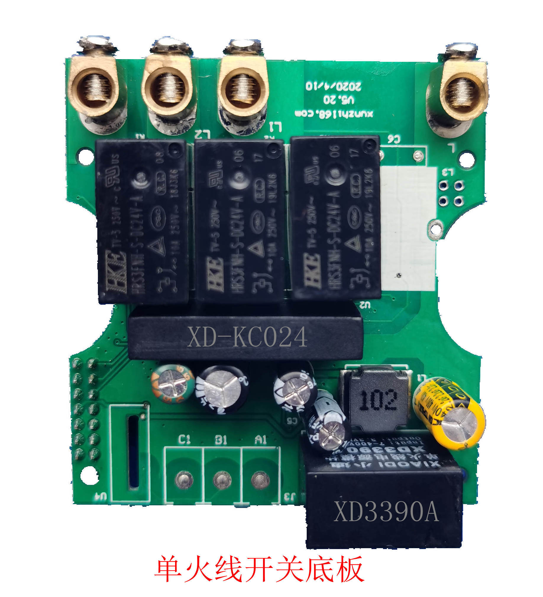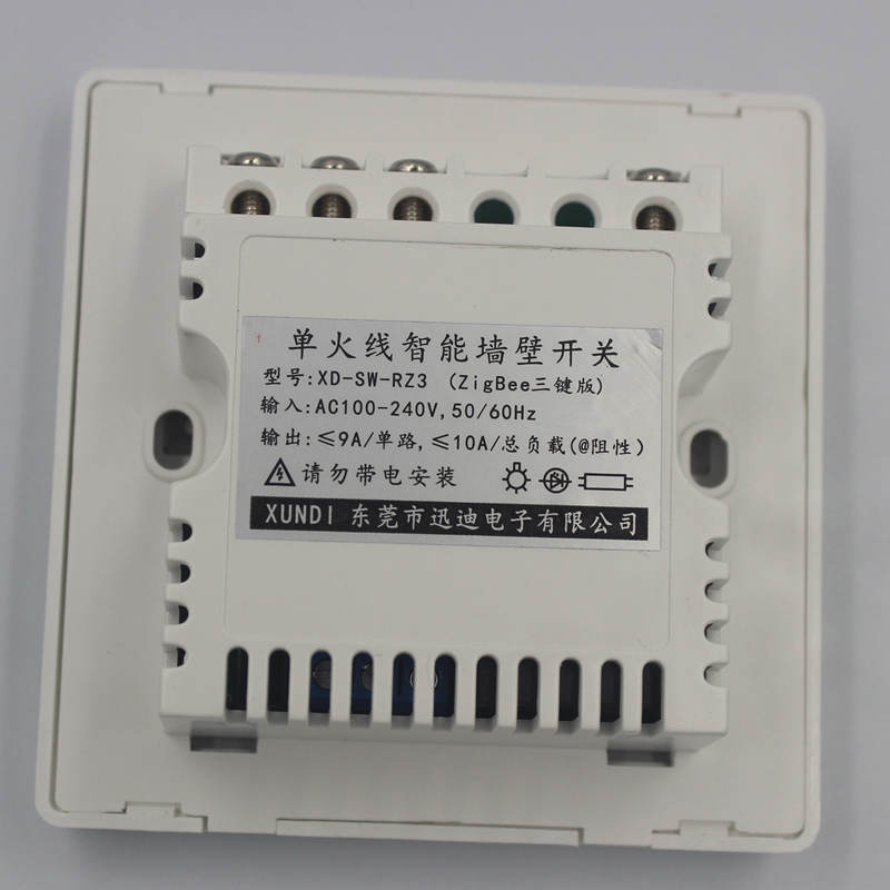 1.单火开关底板:采用迅迪电子(专门做单火,做得更专业)的成熟稳定的单火线技术方案(高性价比的大功率继电器方案,各类灯具兼容、3-2200W负载通用,无“鬼火”不闪烁、触点不粘结,电路不烧机),单火开关底板主要由单火线电源模块XD3390A和单火线驱动模块XD-KC024A及其他元器件组成(XD3390A典型功耗小于2.3mW(@Vout1=3.3V带载200uA时),空载功耗趋近“零”mW。)。