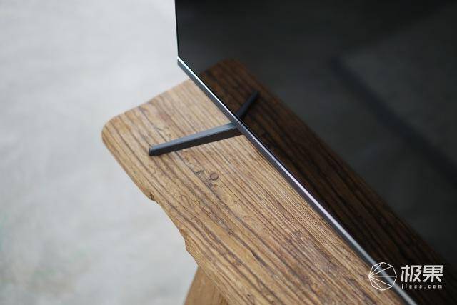 TCL 65T7D的外观设计的非常简洁,和我们家客厅的装修很搭。超窄边的金属边框搭配超薄的机身让屏幕看起来很舒服,机器的质感也是非常好,TCL的Logo精致的嵌在机身的中间,非常的讨喜,而且它的机身也不是很重,即便是女生一个人搬它也是没有问题的。同时这台电视机的支脚设计的很小,方便移动。我没有选择复杂的电视柜来装它,只是简单的把它放在了复古的条凳上,这样的搭配让整个客厅看起来简单而大气。