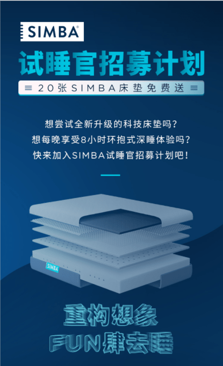 618年中大促已至,来自英国的科创床垫品牌SIMBA面向以“后浪”为代表的新新消费群体,开展了一场品牌破圏营销。以各路圈层KOL为沟通支点,围绕“重构想象 FUN肆去睡”的主题,直达消费者心智。