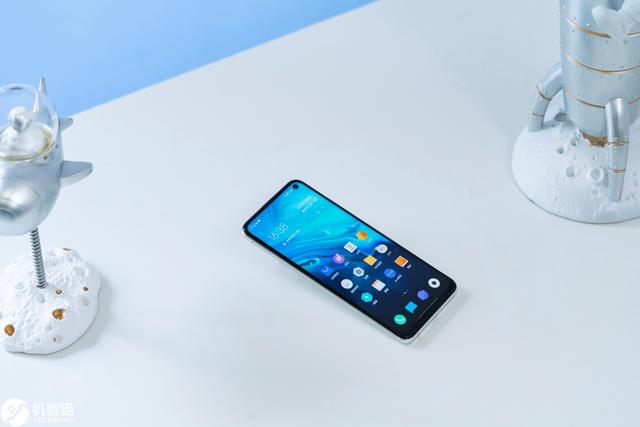 这样的颜色除了给人清凉感之外,对手机其实也有一种视觉减薄的效果,不过上手的话还是能立马感受到这部手机的"分量",约198.8g重量,8.93mm厚度,基本是目前多数5G手机的现状了。