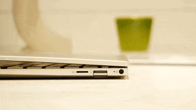 只不过要说的是,为了保持机身的线条,ENVY 13的 USB 3.1 接口有一个下压设计,所以在插入设备的时候需要熟悉一下插入过程。USB-C 保证了 ENVY 13 未来的便利性,可以更好地兼容目前市面上的新设备,毕竟我们都清楚未来就一定是 USB-C 的天下。这个 USB-C 接口的功能齐全,可以充电,也可以输入输出,比如 HDMI 转接。