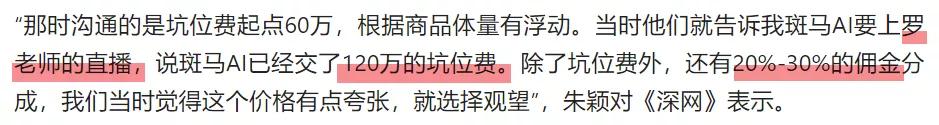 腾讯新闻之前报道,罗永浩带货斑马 AI 课, 15 分钟销售了 52.92 万元,还没到商家付出的坑位费一半。