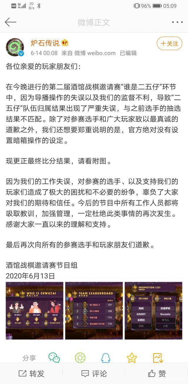 至于网易官方,在昨日就对此事发布了一条微博,针对网友质疑游戏黑幕的问题进行了回答,表示此次临时调整队伍分配问题是因为导播操作的失误与监督不利造成的,比赛本身并没有暗箱操作,这些都是一个误会。
