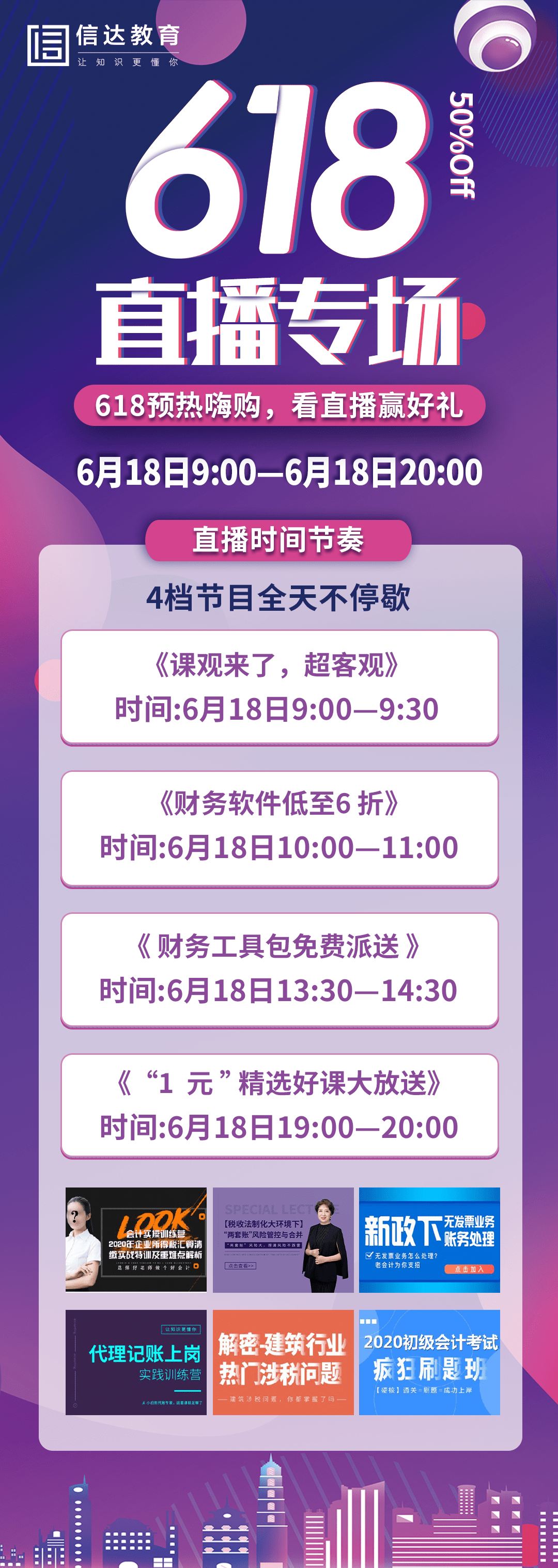 据了解,6月9日,信达推出2020首档大促活动《618会计半价日》,将推出超级百万补贴、上万优惠券和100款半价课程,打造史上优惠力度最大,购课体验最佳,学员粉丝增长最强和好课发布最多的一次618大促活动。