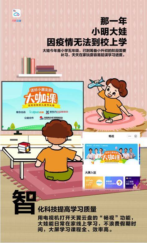 譬如,在家庭教育中,天翼云盘家庭场景与众多教育机构合作,用户可通过TV端、手机端等多种终端畅享海量课程,在云盘中留存与孩子有关的教育报告、活动轨迹等记录。