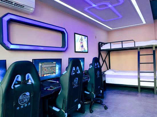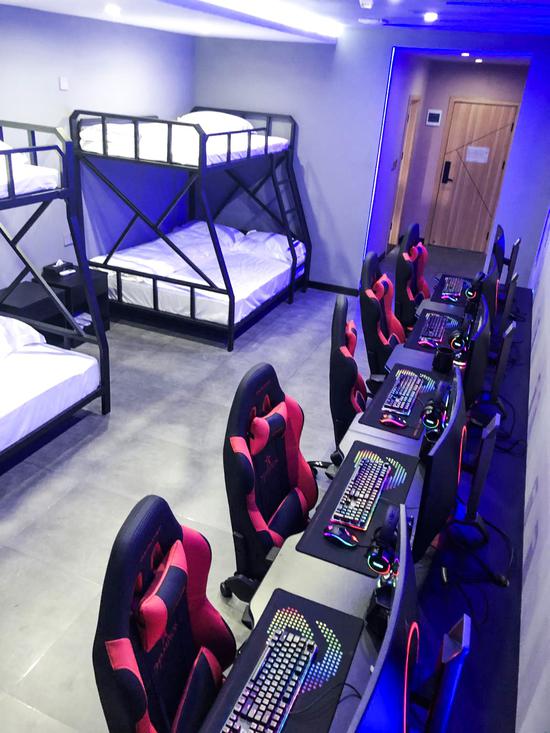 先来看看基友双人间,电竞风的装修,连床都在扮酷,设备齐全、房间宽敞,双排必选!