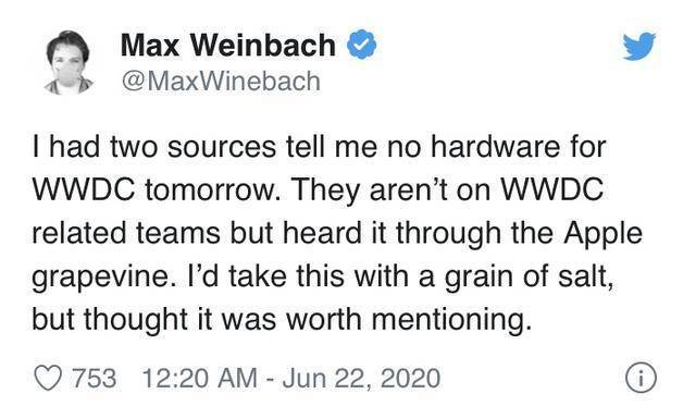 马克斯也表示WWDC 2020大会极有可能不会带来全新硬件产品更新。
