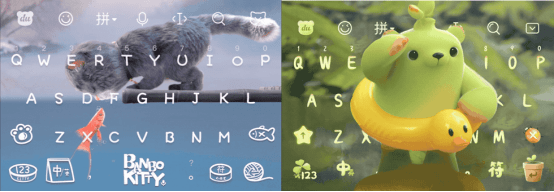 除此之外,还有帕比熊、长草颜团子、斑布猫、萌芽熊、TWINDUCK 双胞胎鸭等一众萌物皮肤上线百度输入法,帕比熊给你比心、颜团子逗你开心,突破次元壁的动漫IP帮你在这沉闷的夏日寻找乐趣。