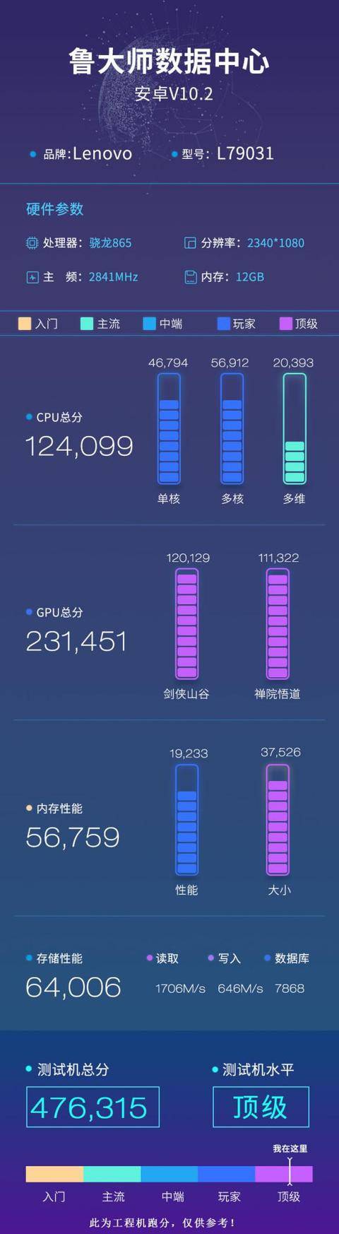 根据鲁大师数据中心最新爆料,一款型号为"Lenovo L79031"的联想工程机跑分曝光,搭载骁龙865处理器,12GB+128GB存储,鲁大师综合性能跑分476315分,实力不俗。而且这还只是工程机数据,量产机型极有可能优化更好,性能更强。