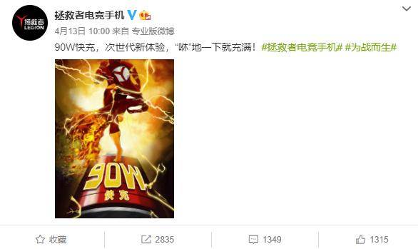 根据此前联想公布的海报,90W快充只需15分钟就能充满4000mAh电池,这是迄今为止已经量产商用的同电池容量充电速度最快、充电功率最高的技术。目前尚不确定联想拯救者电竞手机电池容量是否为4000mAh。