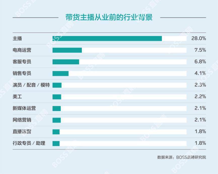 由于带货主播的准入门槛相对较低,薪资待遇相对丰厚,刺激了大量生活服务业和视频直播领域的年轻人以全职或兼职的形式涌入。BOSS直聘研究院数据显示,72%的带货主播是转行而来,在转行做主播之前,超过一半的从业者从事运营类工作。游戏网