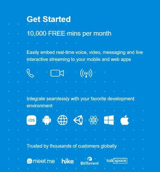 创立于2013年,声网由赵斌在硅谷成立。这家在海外成立的企业,近几年其在国内市场获得不错的发展,在美股研究社看来主要还是因为其提供的产品服务满足了不同企业的场景需求。其客户横跨社交直播、教育、娱乐、游戏、IoT、金融、医疗、电商、企业协作的10余个行业,从服务的企业主来看,产品适应的场景还是较丰富。