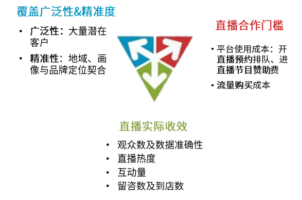 在以往购车环节中,用户通常有很长的“选车选店”迷茫期,选车阶段会关注权威的产品信息,选店阶段则关注经销商的售车互动。因为汽车产品单价高、决策重,用户需要多个角度检验购车信息的真实性与准确性,所以相对线下和图文视频内容,直播的多轮互动是更高效的信息获取渠道。