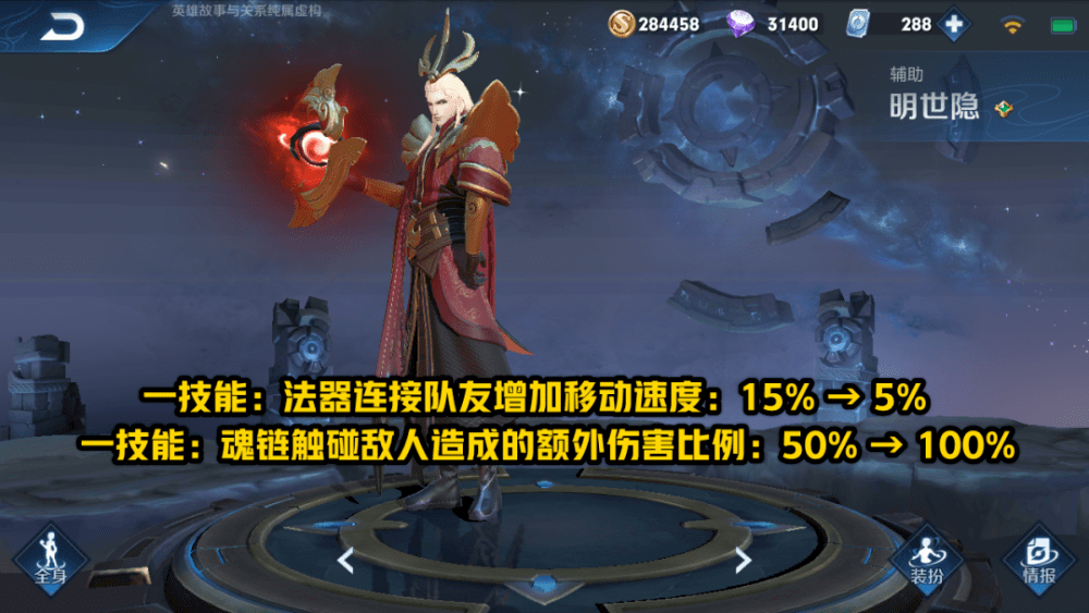 第一位就是我们的明世隐了,作为一个顶尖的存在,其增幅能力还算是挺不错的,对于像鲁班七号,娜可露露这类英雄来说,他的帮助很大,而这一次其体验服的改动也是同步正式服了,比较受伤!