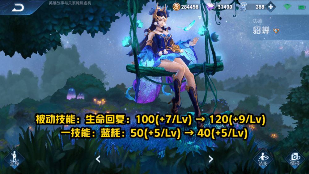 第二个就是我们的貂蝉了,作为一个顶尖的法师英雄,其被动的回复也是稍微增加了一点,一技能蓝耗稍微降低了,这个对于她来说,完全是很好的消息了,对线选能力更强!