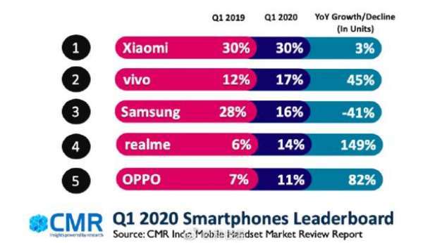 而单从手机产品而言,印度手机市场就基本被中国手机攻陷。据悉,在今年第一季度印度智能手机市场排名前五的品牌中,小米、vivo、OPPO、Realme均是中国品牌,唯有三星一家不是国产厂商。