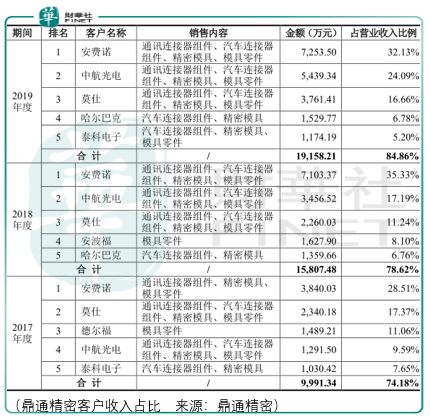 鼎通精密通讯领域的下游客户为安费诺、莫仕、中航光电等行业连接器厂商,经过这些客户集成其他功能件后形成通讯连接器模组或连接器系统,并最终应用在华为、中兴通讯和爱立信等终端客户产品中。