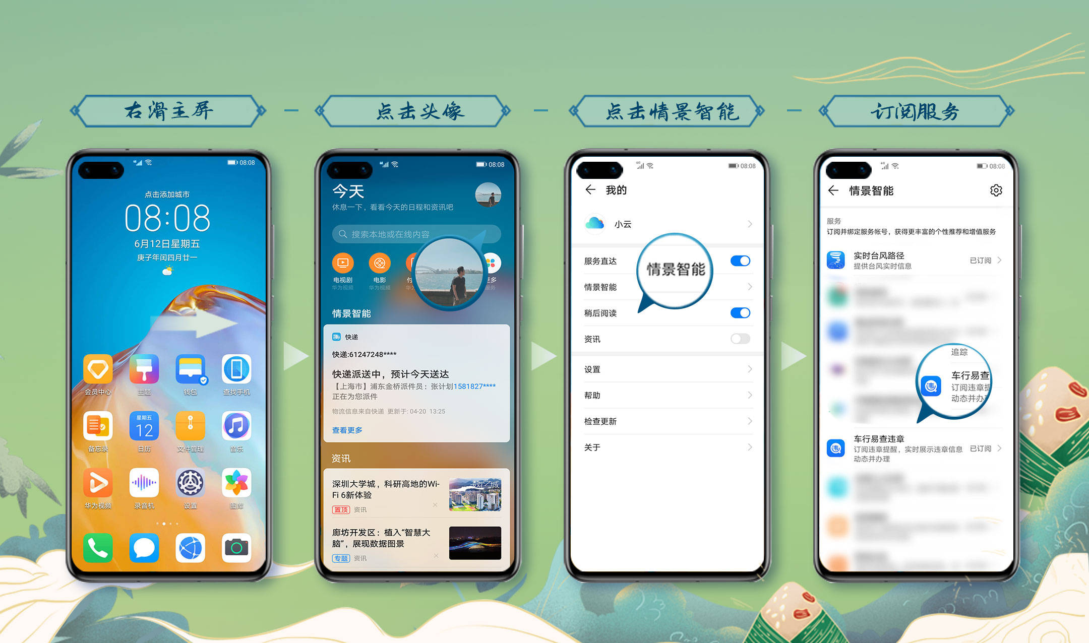 华为智慧助手·今天是华为手机为用户打造的贴心助理,提供实时、便捷的生活服务和资讯信息,“今天”知你所想,及你所需;而随着自身功能和服务内容的不断丰富,越来越受消费者的信任和喜爱。适逢端午节,华为智慧助手·今天上线新的服务,并且联合合作伙伴为用户提供民生相关的优惠,以备端午节期间派上用场,这个时候,只要右滑主屏,“今天”即刻为你服务。