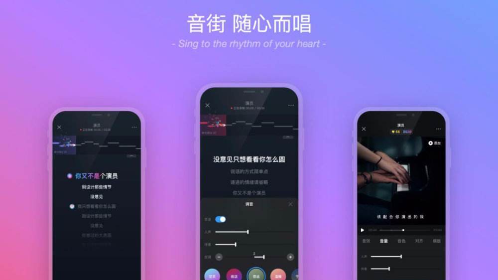再看音街,音街提出的目标是要为95后打造个性化的K歌社区。一键Remix就像音效滤镜,可以让作品一键优化,实现多种风格,丰富歌曲呈现形式。合唱功能,则是让任何人都可以通过合唱的方式一起云K歌,实现了最直接的社交目的。