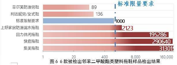具体来看,6款塑料拖鞋样品被检出含邻苯二甲酸酯类塑化剂,4款样品超出欧盟标准限量要求。