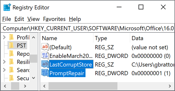 “LastCorruptStore”=“C:\\Users\\user.REDMOND\\AppData\\Local\\Microsoft\\Outlook\\*** Email address is removed for privacy ***”