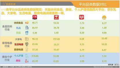 从数据来看,星图数据更具客观性。因为它既指出了休闲食品、美妆、个人护理行业天猫领跑四大平台,也表达了京东在乳品、大家电、生活电器、厨房电器领域更胜一筹。