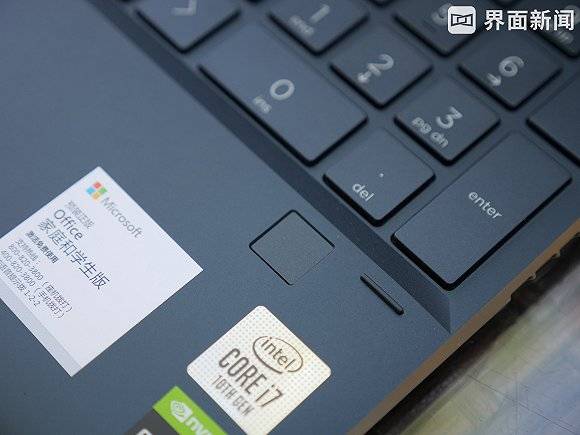 Spectre x360 15可触控变形本整机重量约为1.92 kg,同时配备了全尺寸键盘,也支持键盘背光,而在键盘的下方配有独立的指纹模组,在面部解锁之外,提供了另一种的登陆方式。