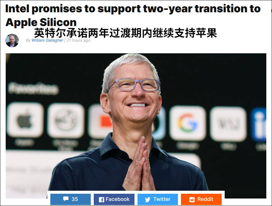 苹果CEO蒂姆·库克在WWDC2020演讲结束时强调,苹果并非立即切断与英特尔的业务。他说道:“我们预计在今年年底前推出首款搭载苹果芯片的Mac电脑,但整个过渡期还需要两年左右的时间。在未来几年,我们仍将继续支持并发布针对英特尔Mac的新版本Mac OS。”