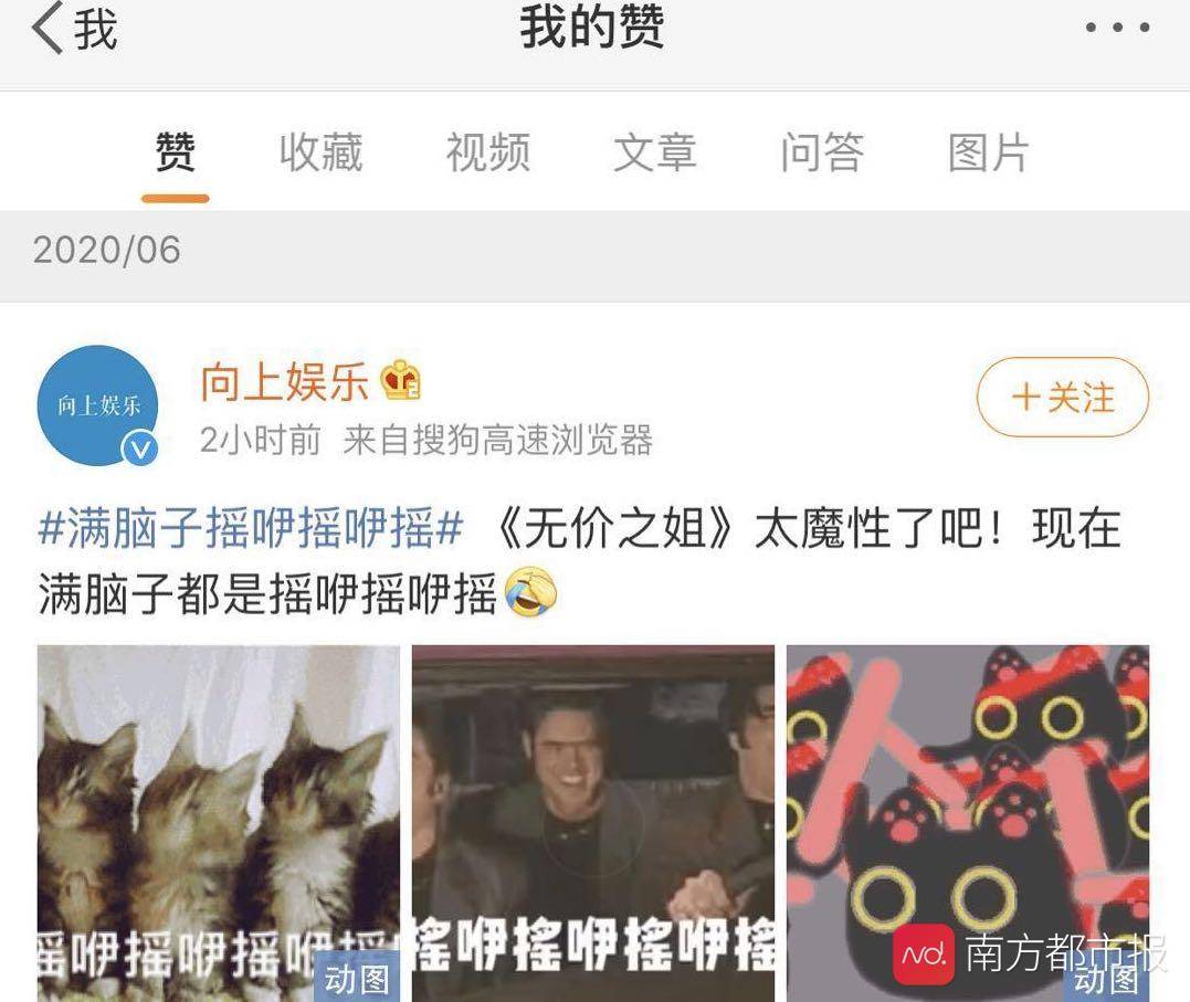异常点赞内容包括最近大火的综艺《乘风破浪的姐姐》。受访者供图。