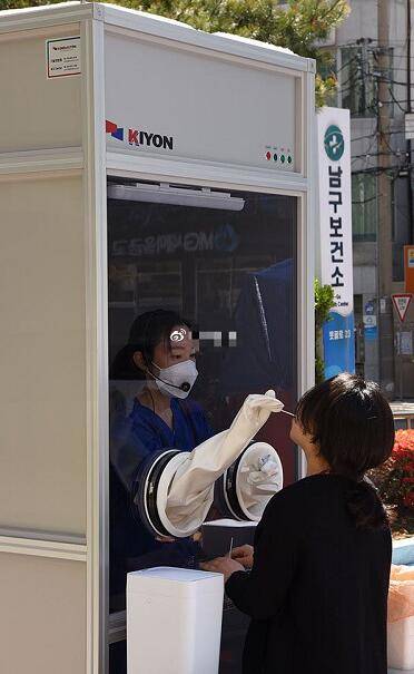 从韩国方面的照片来看,双向步行筛查亭是一个公用电话亭大小,里面的医生甚至不需要穿防护服,医务人员可通过装在筛查亭外的手套采集疑似患者的检体采样,并用内线电话与患者交谈。据悉,设备中设有负压设施及 UV 灯,因此可以保证室内气压低于外部,阻止内部空气流出室外。特别是,亭内检测速度也很快,5分钟即可测一人,大大提升检测效率。