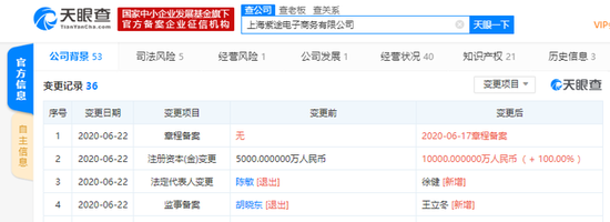 6月24日下午消息,天眼查数据显示,近日,上海紫途电子商务有限公司发生多项工商变更,其注册资本由5000万人民币增至1亿人民币,增幅达100%。与此同时,途虎养车创始人兼CEO陈敏卸任法定代表人,由徐健接任,胡晓东退出监事行列,新增王立冬为监事。