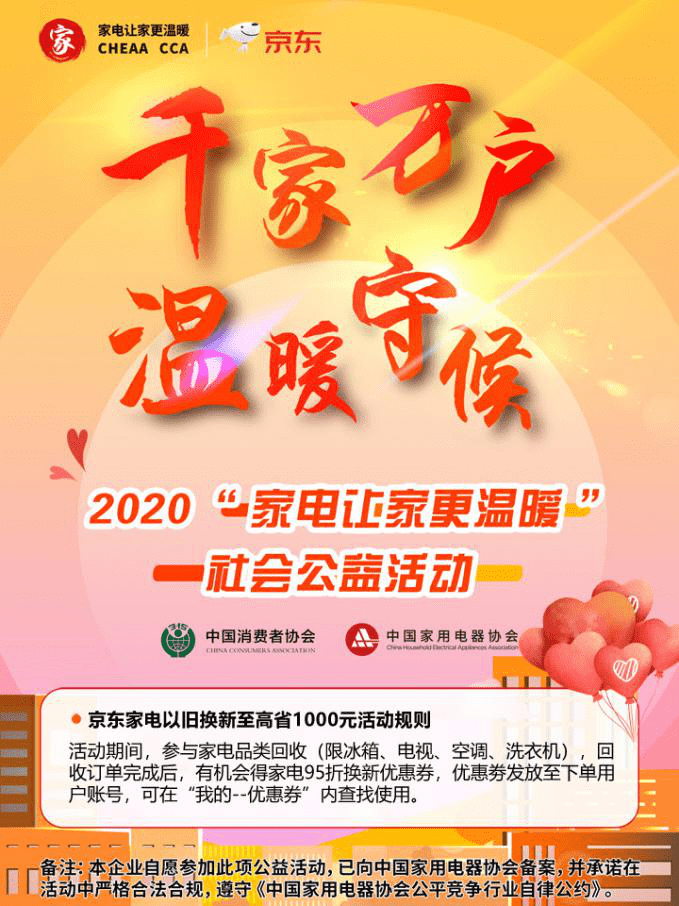 用最新最先进的家电产品,是每一位消费者的美好诉求,淘汰旧的买新的,也是见证生活进步的重要仪式。为更好地促进经济复苏和增长,用优质家电活跃市场,6月16日,中国家用电器协会和中国消费者协会共同发起了“家电让家更温暖”社会公益活动,京东作为我国的头部电商平台,在本次活动中荣获了“家电让家更温暖”社会公益活动“示范企业”。