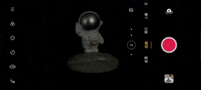 超级夜景功能对于目前的暗光视频拍摄而言,就是将原本不可能拍摄成片的场景变为可能。在开启超级夜景视频模式后,能够显著的感受到画面亮度的提升。比如上图,相比普通模式下仅能看到的“宇航员”轮廓,而OPPO Reno4的超级夜景模式提供了清晰的细节表现,画面整体十分明亮,看不清的问题完全被解决掉了。