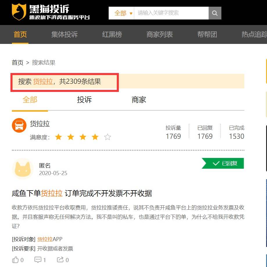 目前,在黑猫投诉平台上,有关货拉拉的投诉多达2309条,有关快狗打车的投诉也有1177条。其中,大部分投诉都是司机恶意加价、乱收费、私下收取费用等。各种漫天要价的问题,已经严重侵犯消费者的利益,并让同城货运行业背上不少骂名。而“天价搬运费”诅咒的根源,或许并不在于司机,而是在于企业。这与同城活力近年来竞争日趋白热化,有着直接关系。