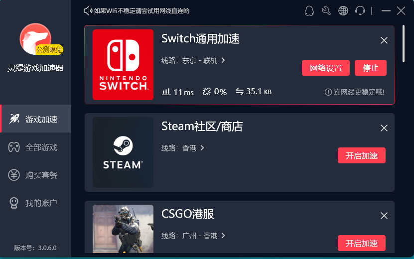 这是最稳妥和大众的加速方式,不仅全面支持主流热门游戏,而且同时能够加速Switch、PS4、Xbox三大游戏主机。最最最重要的是灵缇加速正在免费公测!!免费!!