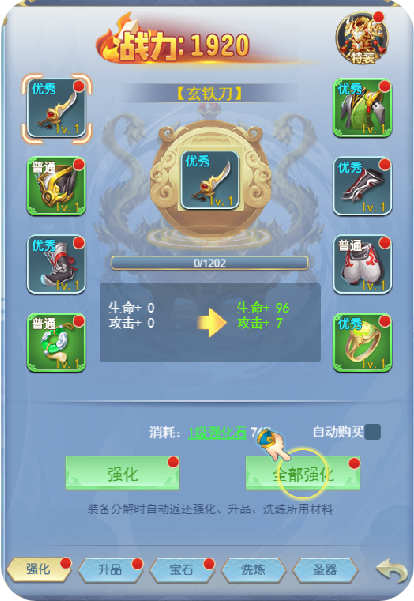 【装备收集】:独创无等级装备,一套装备到底,任您随意强化、锻造、镶嵌宝石!