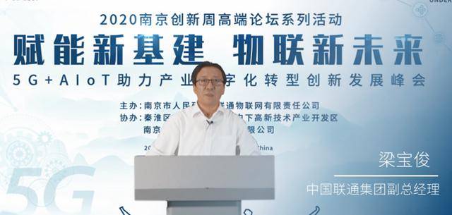 中国联通集团副总经理梁宝俊围绕中国联通紧抓5G新基建的发展布局作致辞,他表示,中国联通坚决贯彻落实中央精神,积极投身新基建,围绕工信部25号文件精神,全面构建以"物"为核心的5G+AIoT能力,推动物联网向"物网协同"和"人物融合"的2.0发展阶段。