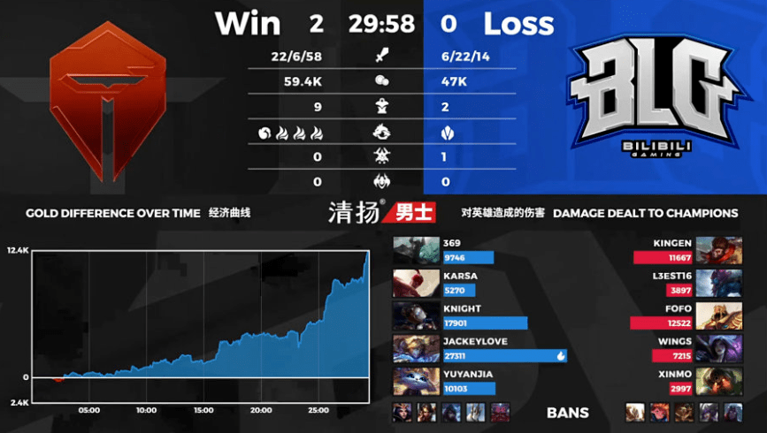 其实,这场比赛很多人都可以知道结果,因为TES与BLG这两支战队的实力还是有些差距的。但比赛还是看双方的状态的,万万没想到TES的状态是多么的出色,两场比赛都是以碾压之势战胜了TES,经济曲线真的就是一模一样,不知道的还以为是重播呢。其实,第一场比赛结束后,观众对于比赛的胜负已经有了底,唯一期待的便是左手以及阿水的发挥。