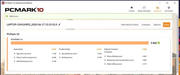 作为对比,联想小新15 2020综合得分为3662分,常用基本功能得分6837分,生产力6631分,数位内容创作得分2940分。