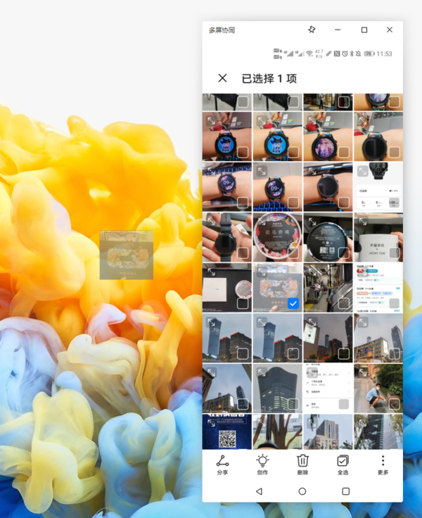 另外,你还可以直接查看手机上的文件,比如文档、视频、文章、表格以及各种APP,同时文件还能直接拖拽到电脑中。像图片,在手机图库中选中图片后长按,然后就可以拖到电脑中。值得注意的是,APP中发送的文件没办法直接转移,但是可以下载到手机本地,然后在自带的“文档管理”中进行拖拽便可以转移文档了。