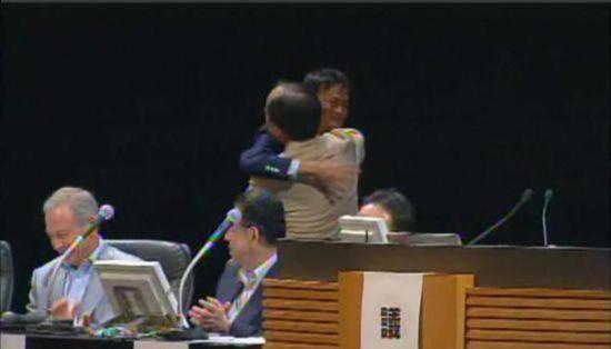 在2011年6月24日的软银股东大会上,马云也以99%的得票数连任了软银集团董事会成员,在现场,孙正义与马云紧紧的抱在一起,两人携手对其他人竖起大拇指,笑的甜过初恋一般。孙正义当时说:“马云我们是朋友,他依然是我很重要的生意伙伴,我们彼此信任,大家不用担心。”