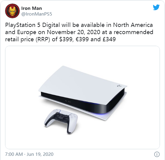 近日有推特爆料大神表示,PS5的售价可能为499美元、499欧元、或449英镑;普通版和数字版都将配备825GB的固态硬盘,数字版的售价为399美元、399欧元、或349英镑。根据他之前的爆料来看,可信度还是很高的。