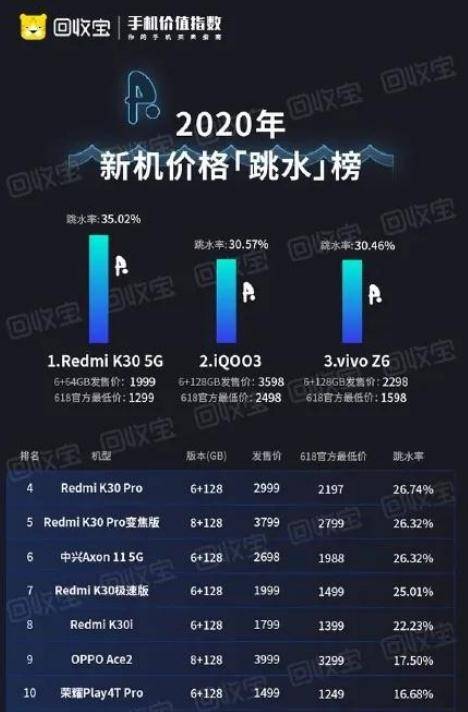 当前,竞争日益激烈手机市场,价格战依旧是各大手机厂商抢夺用户,提升业绩的强有力手段。除了千元机市场的争夺,许多定价过高的手机也会通过主动跳水来吸引消费者。近日,知名的回收软件"回收宝"就发布了2020年新机价格的"跳水"排行榜。