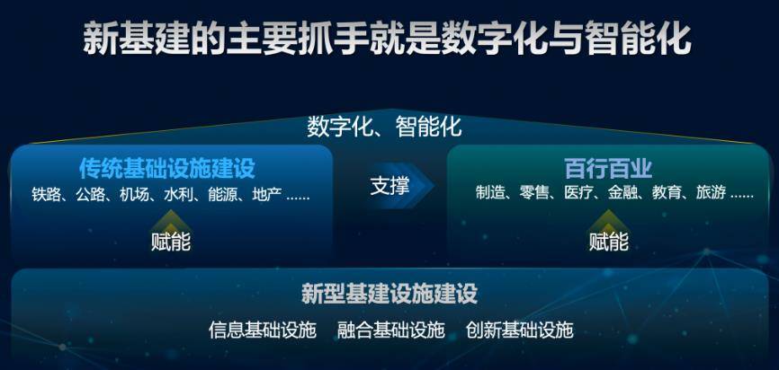 在他看来,“新基建”的主要抓手和工具正是数字化与智能化,这两点是新基建的核心。