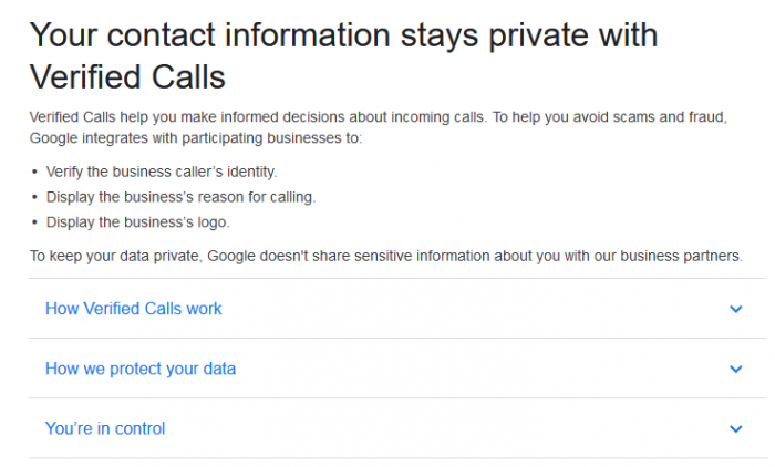 虽然谷歌的支持页面说该功能是默认开启的,但它概述了几个限制。首先是Verified Calls依赖于企业主动向谷歌提供信息,这意味着并不是所有没有包含验证徽章的电话都一定是垃圾电话。谷歌还表示,这项服务只适用于Phone应用,这意味着它不会在每一部Android手机上都能使用。与此同时,它还依赖于你将你的电话号码添加到你的谷歌账户中,谷歌表示,用户还可能被问到快速挂断以及删除通话记录的原因。