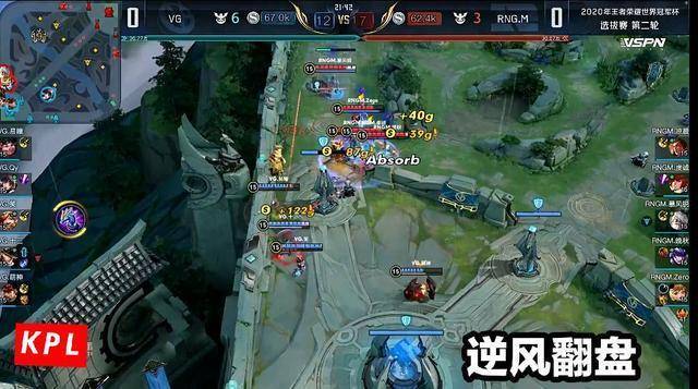 其次就是RNG.M对阵VG的比赛。这场比赛中,RNG.M一度落后VG一万多经济。但是RNG.M非常清楚自己的阵容,硬生生拖到后期,等到了马超、孙膑二人的装备成型,在配合吕布的情况下,进可攻退可守,在18分钟时候找到VG的破绽,主动出击,一下子就扭转了局面。最后一波即便是法师和打野全部被开的情况下,RNG.M依然凭借孙膑马超这个组合进行反打,取得了团战的胜利,也赢得了比赛的胜利。