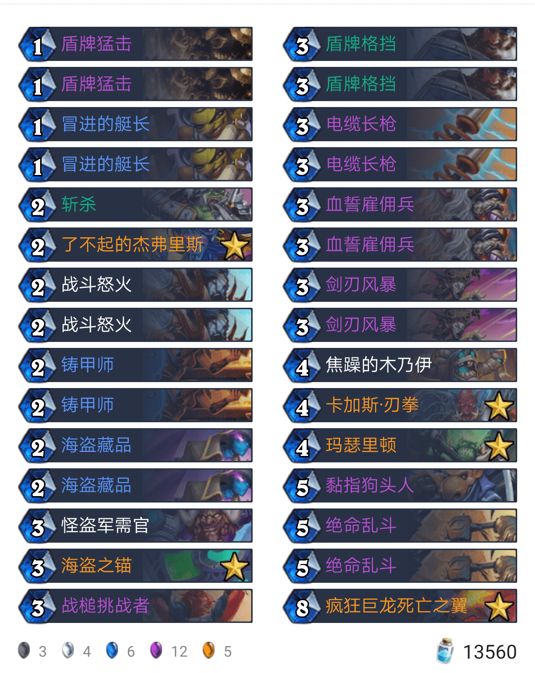 这一套是比较传统的防战了,不需要有太多的说明,Xhope在这套卡组中还是选择带上了玛瑟里顿,可能是这套卡组唯一的亮点。