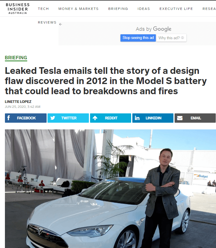 特斯拉很可能从2012年起,就知道Model S电池有起火风险。