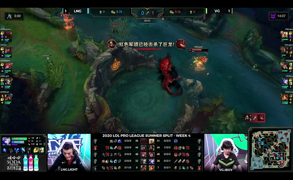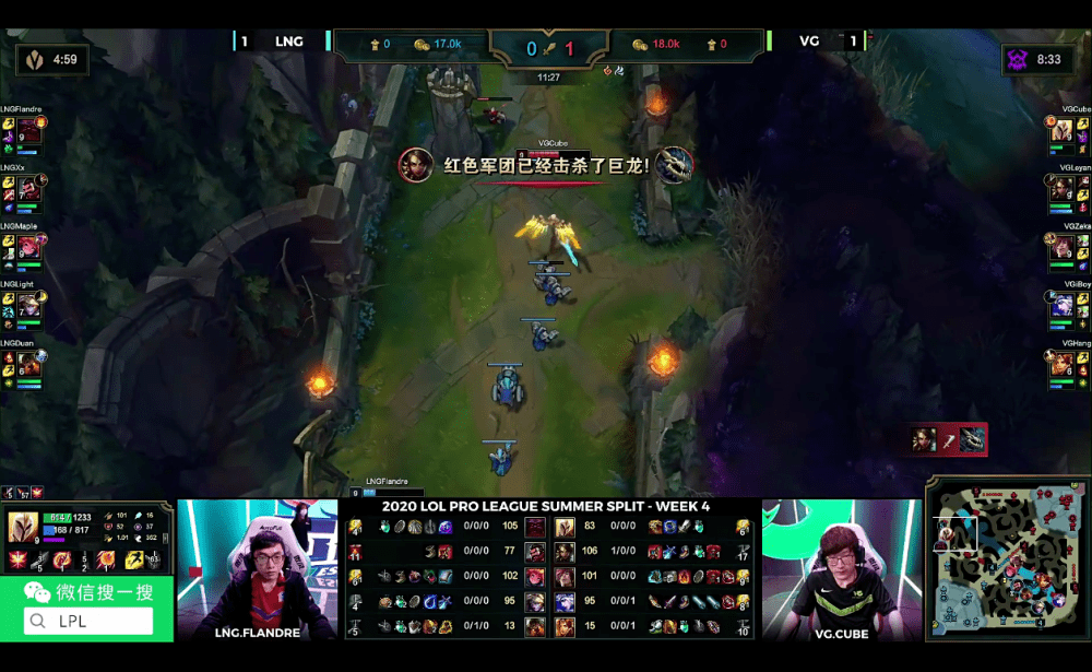 [17:00] LNG开打小龙,VG前来阻止,豹女伤害爆炸,VG打出二换三后拿下土龙。