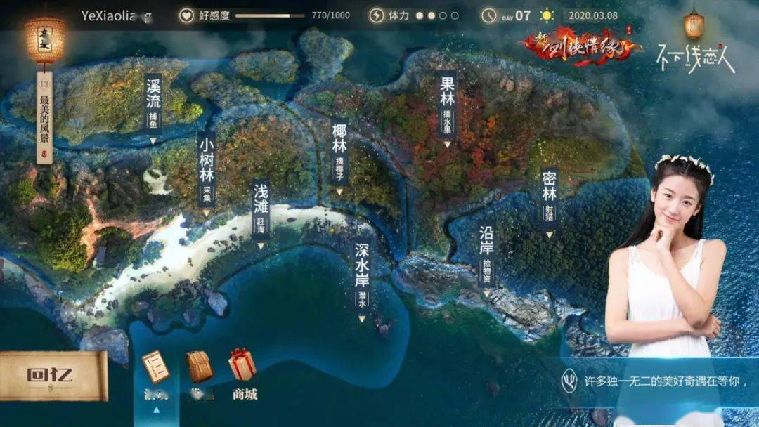 玩家在与女主角互动时,共可探索数十种不同的撩妹方式。除此之外,还能以第一视角体验实景的捕鱼、狩猎、赶海等荒岛求生玩法。